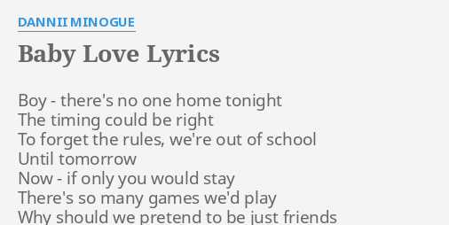 Baby love dannii minogue. My Baby Baby love you are my Baby love just call me Boy theres no one home tonight The timing could be right To forget the blues Were out of school until tomorrow. Dannii Minogue - Attitude 431 04. Dannii Minogue - Baby Love.