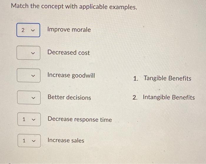 This is an example of a tangible resource. Become an industry leader in customer satisfaction. The assignment is a case study analysis. When designing delivery systems organisations use developments in information technology IT to rethink -approaches while others choose different ways to deliver the services they offer. Become the industry leading low-cost provider. Lower costs for system and equipment maintenance spare parts inventory and capital replacement. A reduced workforce is an example of a tangible benefit of an information system. _____ are tangible benefits of information systems. Projected benefits plus the fair value of the pension plan assets minus employer contributions to the pension plan.