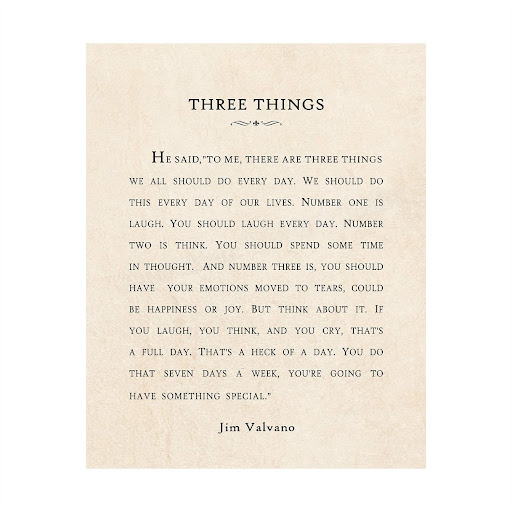 To me there are three things we all should do every day. Jimmy Valvano-Three Things Life Quotes Wall Art- 8 x 10 Vintage Parchment Print-Ready to Frame.